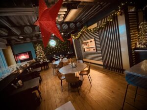 When it comes to food, you can choose between delicious Christmas grazing boards loaded with meats, cheeses, breads, olives, and pickles, or enjoy a mouthwatering buffet inspired by their popular menu. Sociable Folk can host groups of 40 to 100 people, with prices ranging from £14 – £20 per person.
