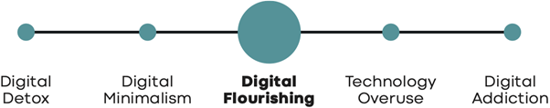 In her article in Greater Good Magazine, Digital Wellness Institute co-founder, Amy Blankson, suggests that we should: “Think of digital wellness as a spectrum, ranging from excessive technology use to complete unplugging”.