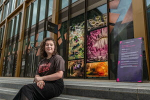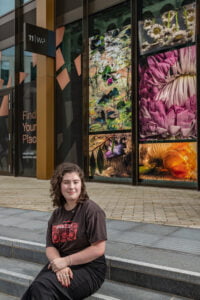 Our closing installation comes from final year photography student, Maisie Slater. Maisie’s piece, titled ‘State of Flowers’, uses photography to frame the effects climate change will have on nature, and uses flowers submerged in different states of water to represent its impact including extreme weather and rising ocean levels.