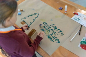 On the festive fun had, one student said: “I liked designing my own wrapping paper, and I learnt that if you scrunch it up, it means it can be recycled.”