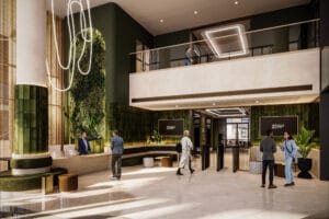 Enhancements will also be made to the entrance to create a sleek new sense of arrival with a refurbished reception leading to a stylish exclusive business lounge. The building will also include changing facilities with 15 showers and 140 lockers, a cycle maintenance hub and 152 secure bike storage spaces.