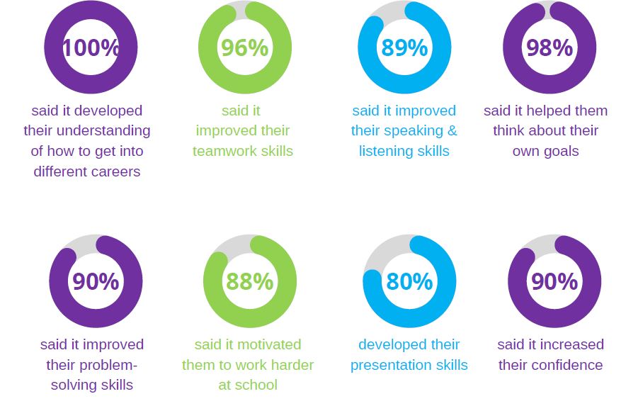 Not only did the students benefit from the experience, but the volunteers also found value from taking part, with 86% of volunteers saying the festival gave them an opportunity to network with other businesses and 95% saying taking part improved their business profile and access to future talent.