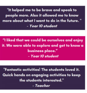 A year 10 student said: “I liked how we learned about different jobs which usually aren’t talked about”, and another commented: “It helped me build my confidence and communication skills.”